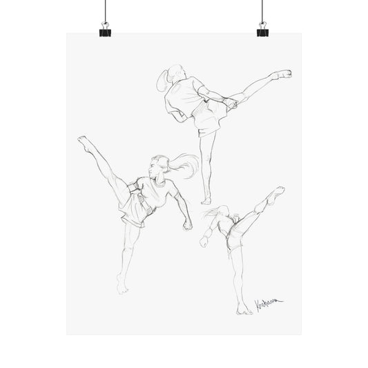 Muay Thai Sketch Studies High Kick Matte Poster