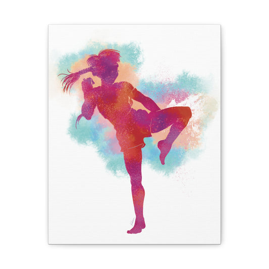 Muay Thai Women Body Kick Canvas Gallery Wraps